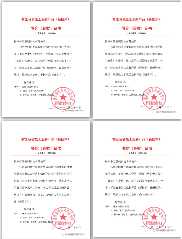 近日,我司四款明月設(shè)備通過浙江省工業(yè)新產(chǎn)品(新技術(shù))鑒定驗收,獲得二項技術(shù)先進,二項技術(shù)領(lǐng)先。分別是 “長壽命智能無線膠裝機”、“高可靠智能無線膠裝機”、“防碰撞智能無線膠裝機”、“高精度智能無線膠裝機”。