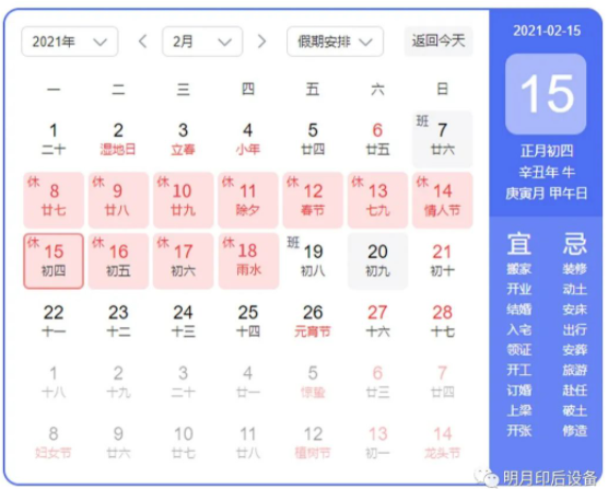 1.2月08日至2月18日,共計11天,2月19號(正月初八)正式上班;