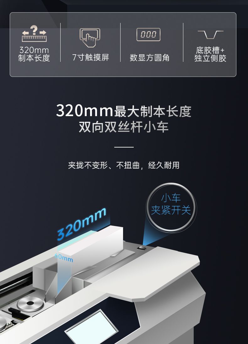 2.膠裝長度320mm,膠裝厚度600頁復印紙